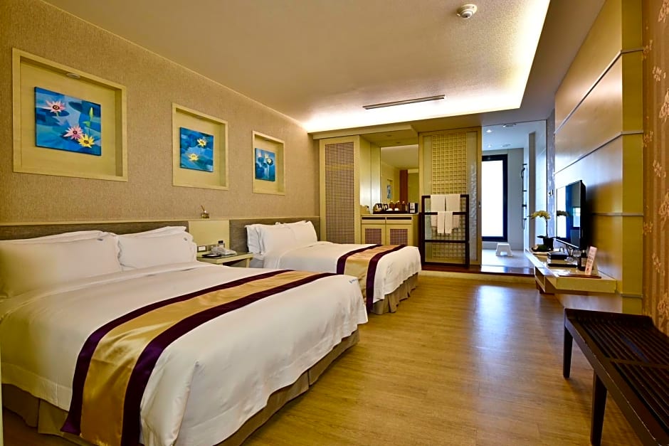 Featuring fully carpeted floors, air-conditioned rooms are fitted with a flat-screen TV, sofa and mini-bar. A spa bathtub, fluffy bathrobes and free toiletries are included in the private bathrooms.